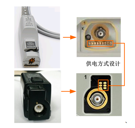 圖3的無源探頭可用于大部分示波器的信號(hào)輸入,圖4的探頭因?yàn)樵诮Y(jié)構(gòu)上設(shè)計(jì)獨(dú)特,且其需要供電,所以僅適用于與其兼容的示波器輸入。
