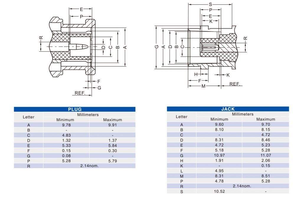 中心接觸電阻:≦ 1.5 mΩ (Milliohms max.)