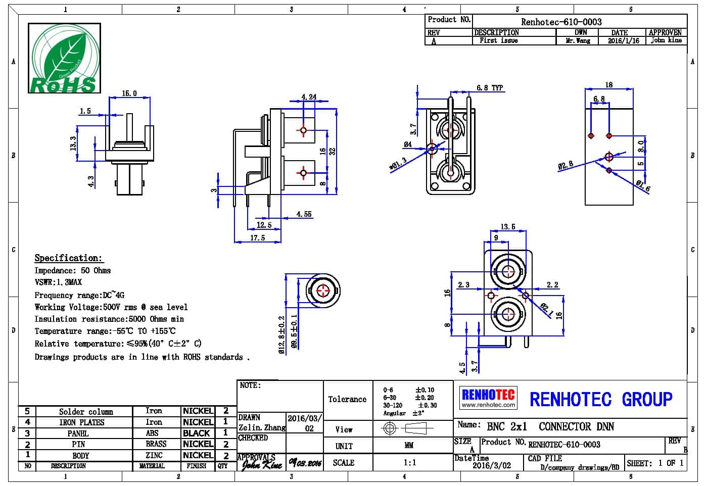 | 阻抗 | 50 ohm |