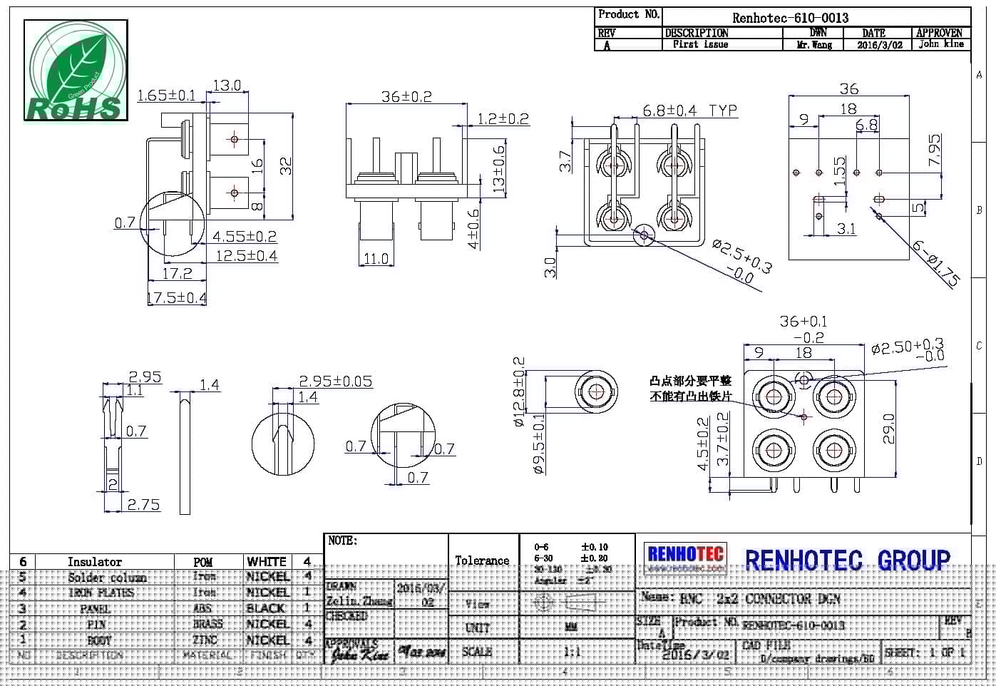 | 部件 | 材料 | 表面處理 |