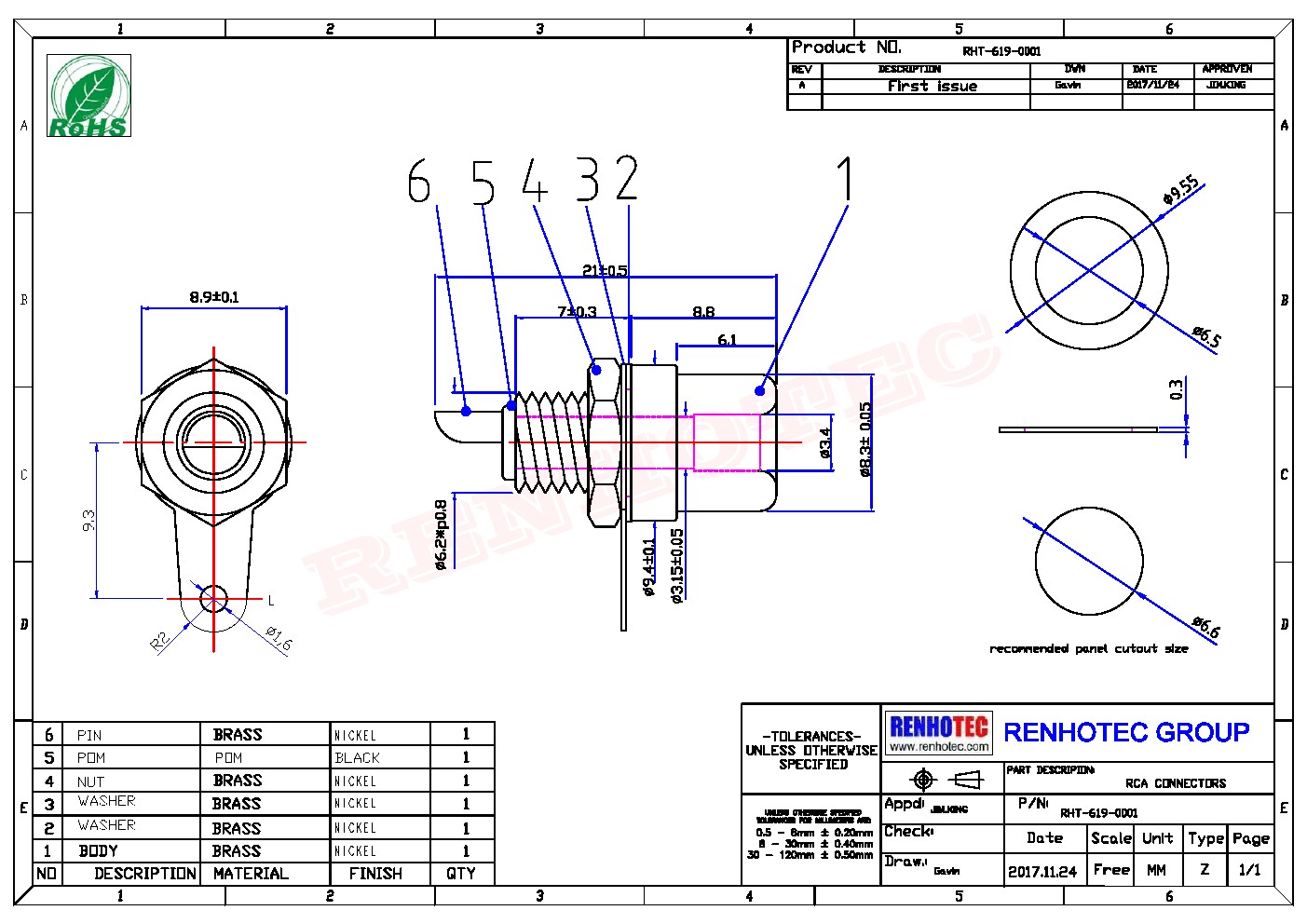 | 溫度范圍 | Teflon -55℃~+155℃ / POM -40℃~+60℃ |