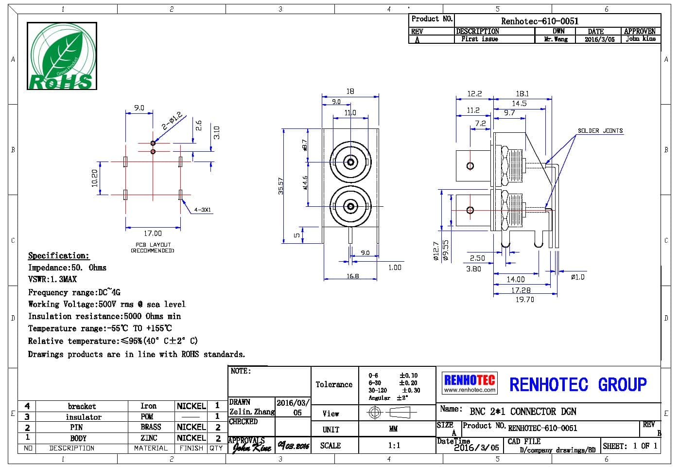 bnc母座 彎式射頻同軸 鋅合金 PCB板端