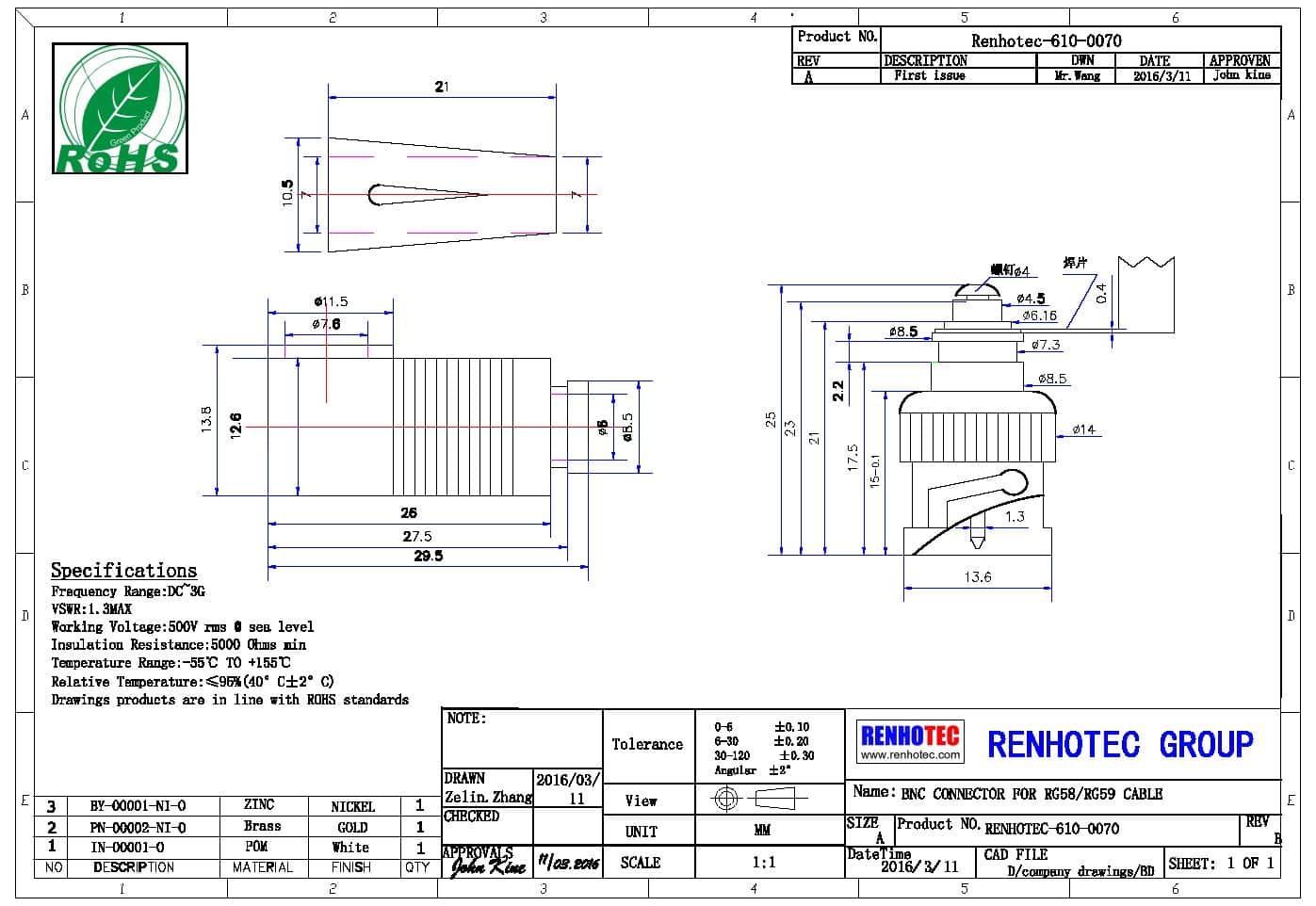 | 電壓駐波比 | 直式 ≦ 1.22/3GHz / 彎式≦ 1.30/3GHz |