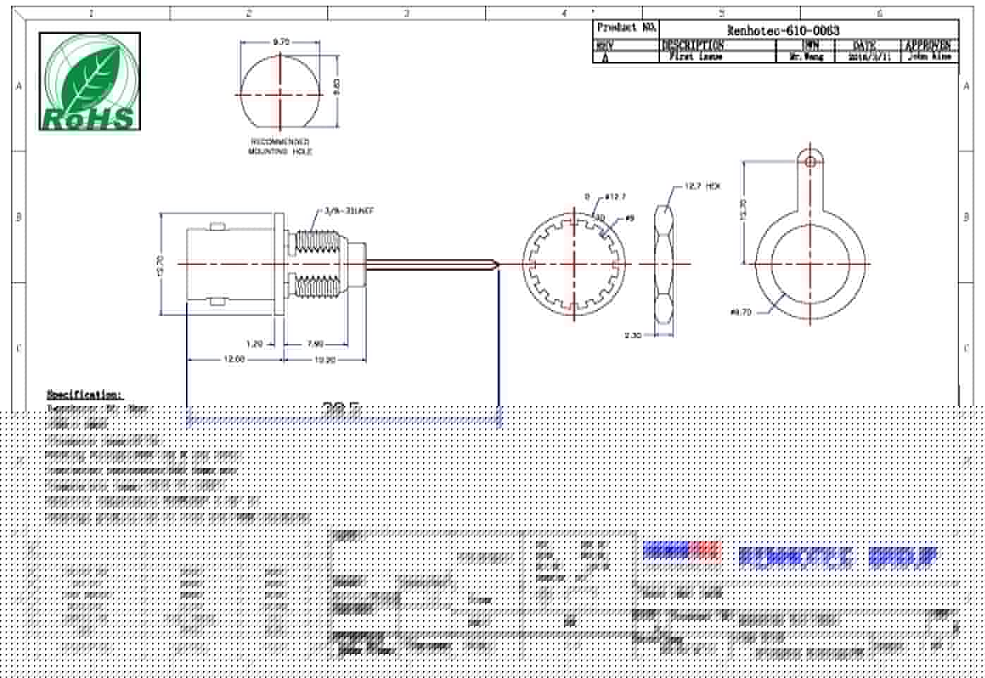 中心接觸電阻 ≦ 1.5 mΩ (Milliohms max.)