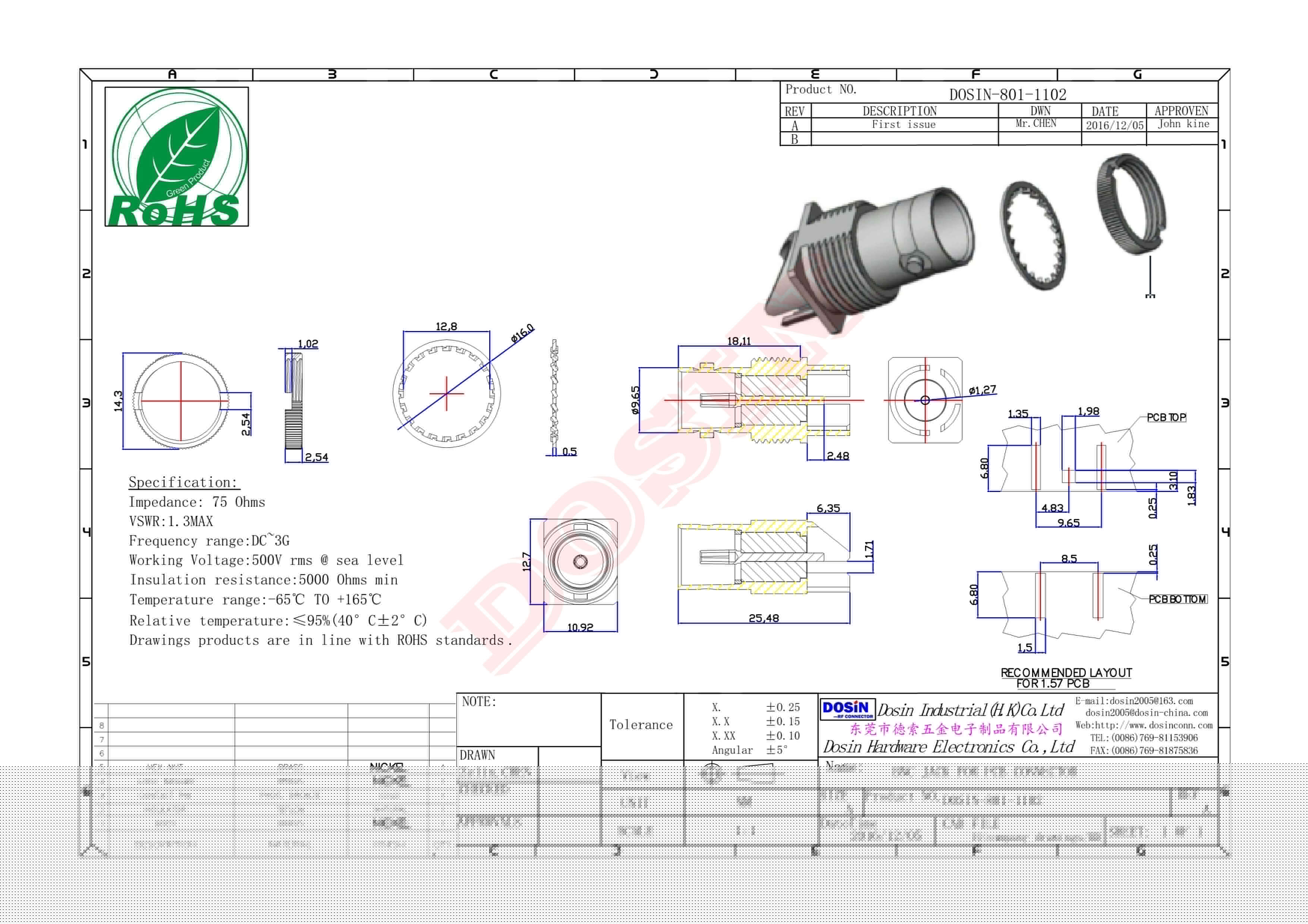 bnc 鍍金母頭直式邊緣卡板接PCB板