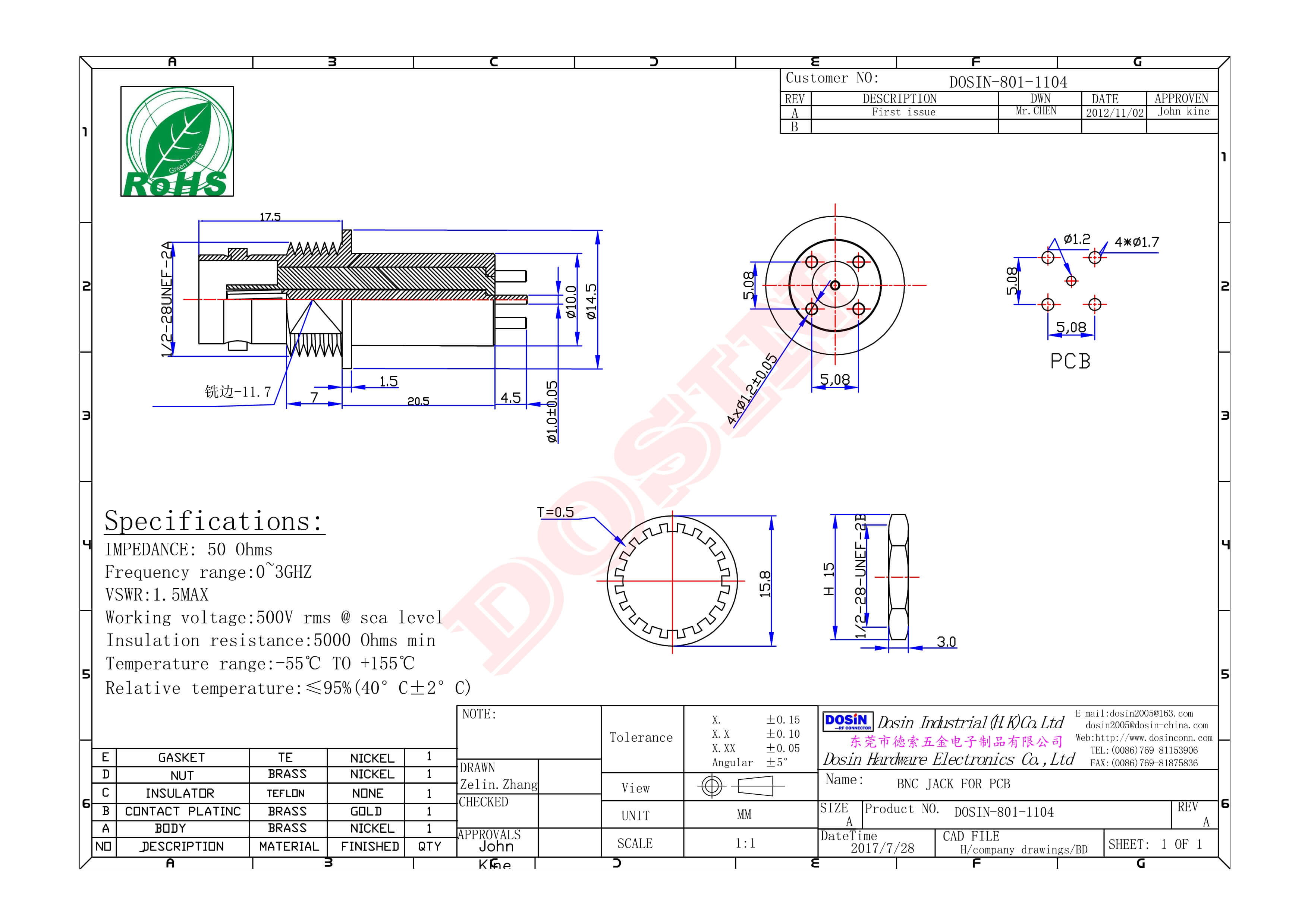 | 中心接觸電阻 | ≦ 1.5 mΩ (Milliohms max.) |