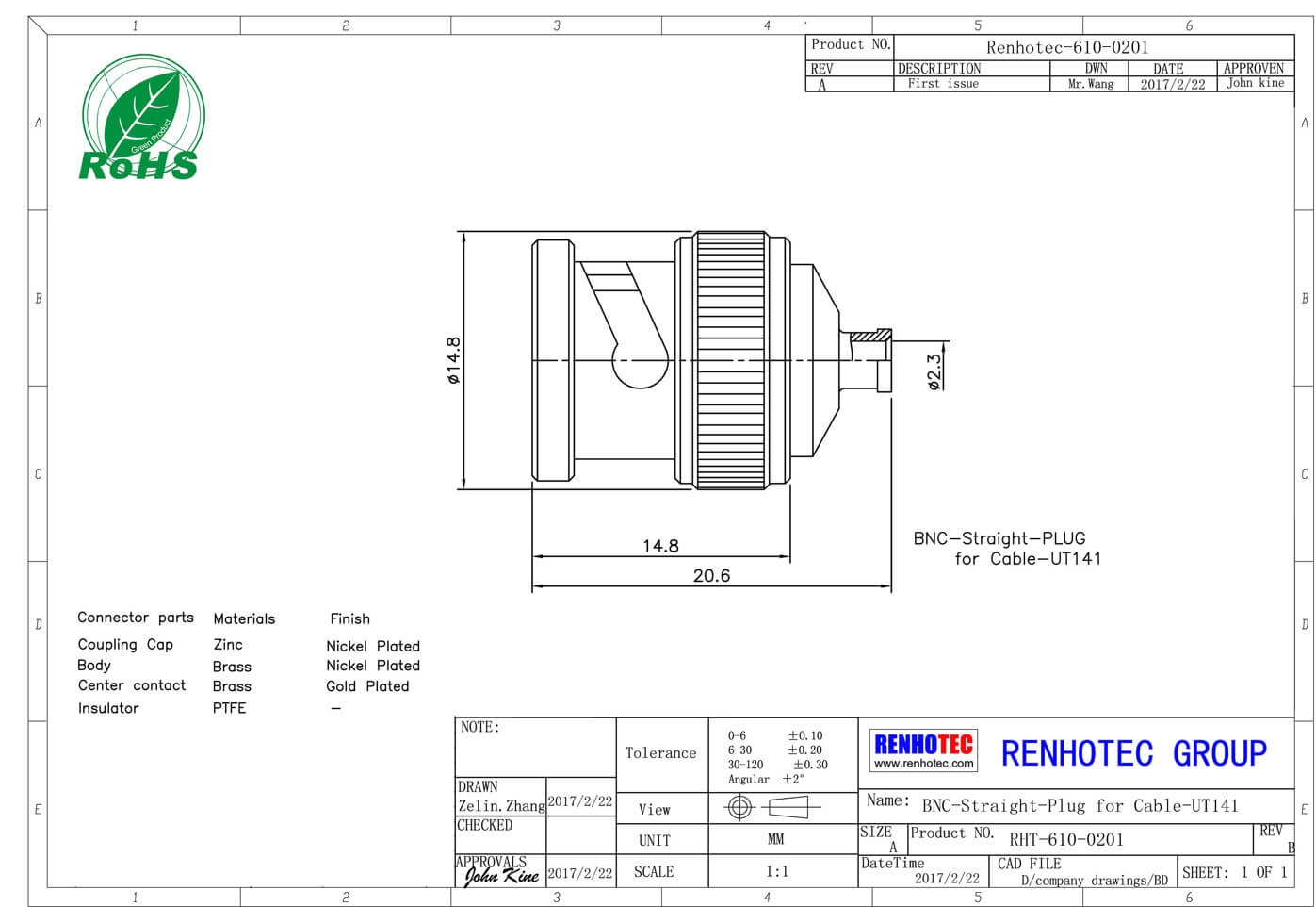 | 電壓駐波比 | 直式 ≦ 1.22/3GHz / 彎式≦ 1.30/3GHz |